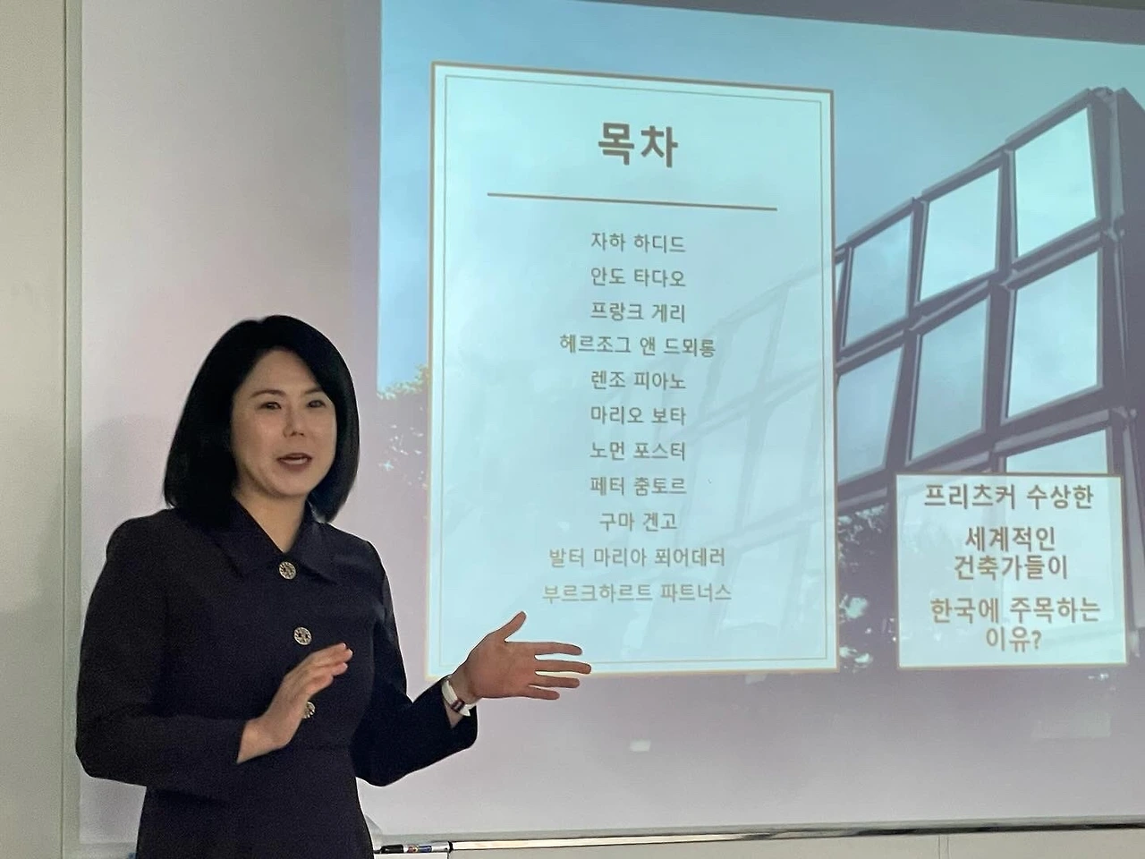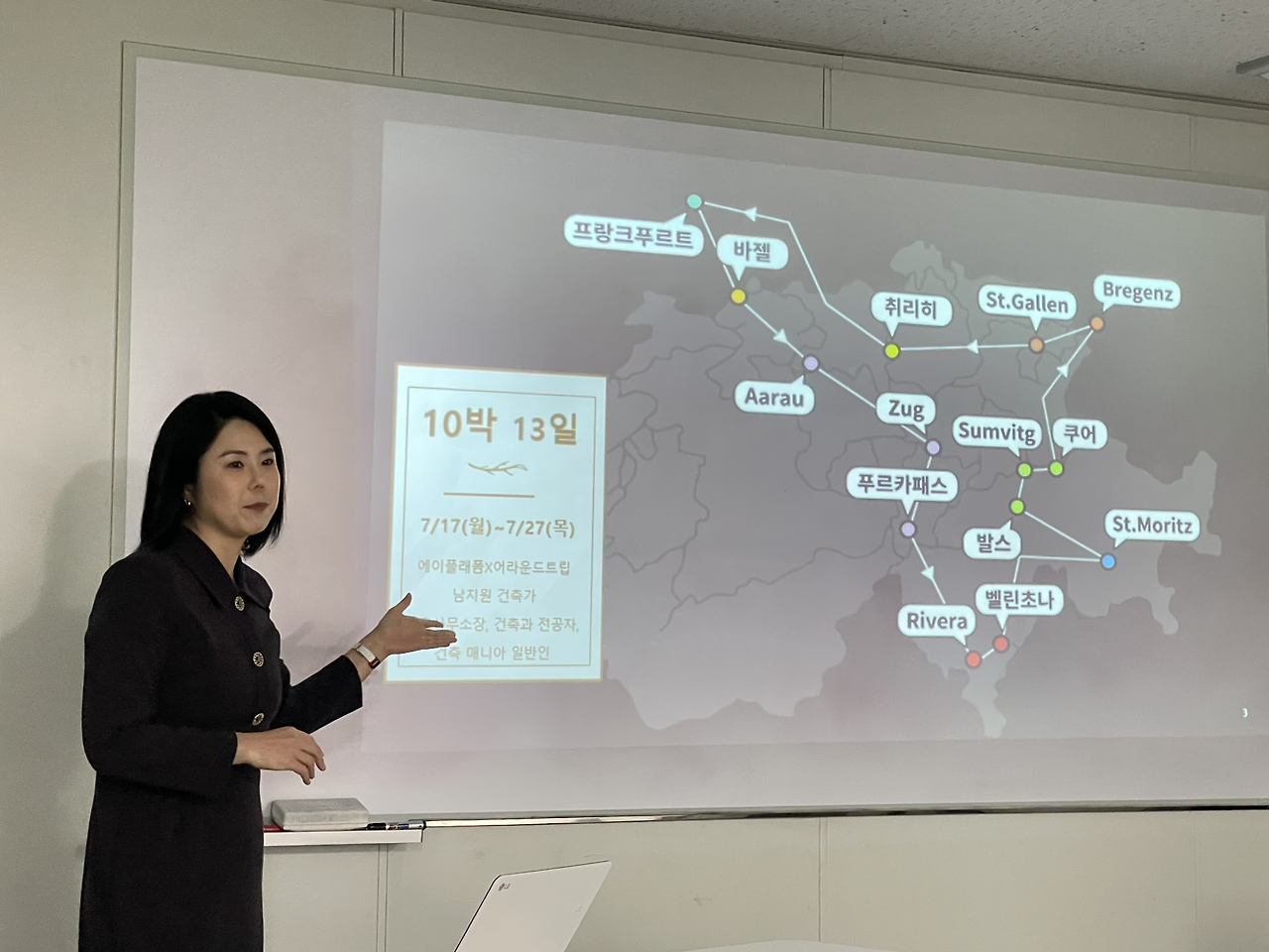 그와 함께 우렁찬 목소리로 또박또박 체계적으로 설명하는 그녀의 환한 모습은 유쾌하기 이를 데 없었다. 그녀가 소개하는 <스위스에서의 건축기행 답사기>를 듣는 내내 스위스의 그곳을 함께 구경 다니는 듯 설레는 마음이었다.
