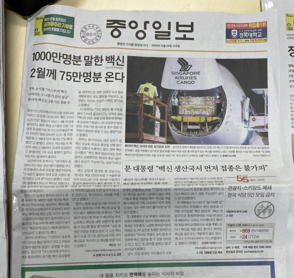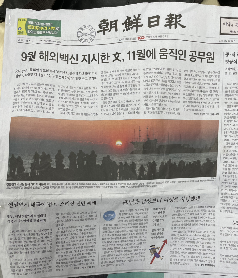 오랜만에 종이로 인쇄된 신문을 펼쳐보니 시야가 탁 트이는 느낌이다.