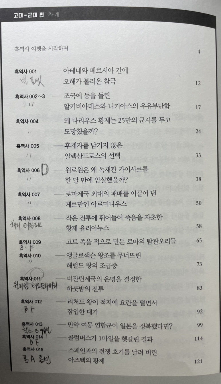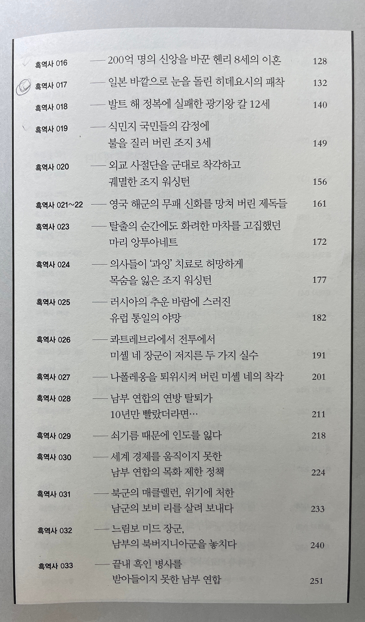 <원로원은 왜 독재관 카이사르를 한 달 만에 암살했을까?>, <콜럼버스가 1마일을 헷갈린 결과>, <만약 타이타닉호에 쌍안경 열쇠가 있었더라면> 등등...