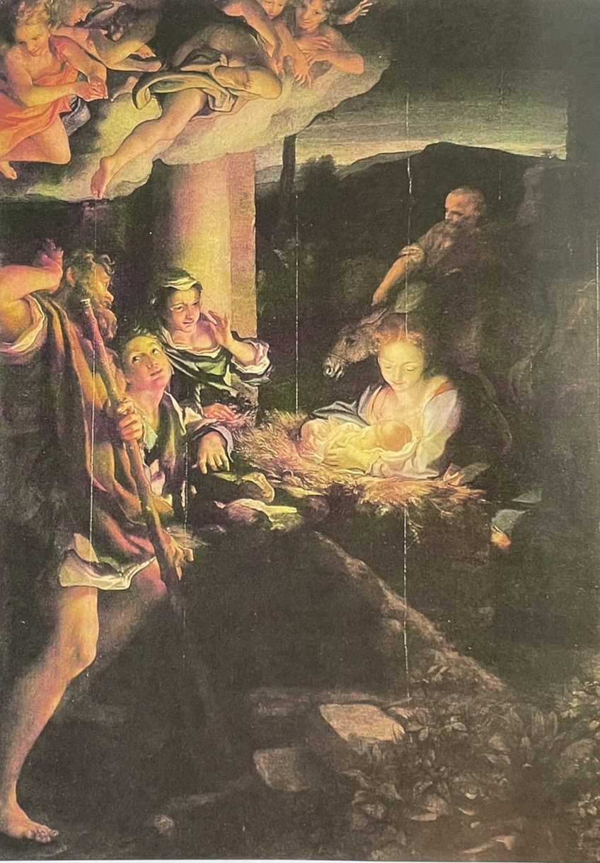 이 그림을 보는 우리는 아기 예수가 탄생한 장면으로 목동과 함께 달려가 요한복음서가 전하는 어둠 속을 비추는 '빛'의 기적을 보는 것 같은 황홀경에 빠져들게 된다.