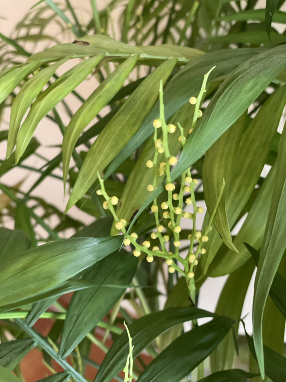 지난해 12월 추위가 밀어닥칠 때까지 거실 베란다에 방치해두었다가 시들시들 힘을 잃어가던 테이블 야자와 커피나무를 발견하고 깜짝 놀라 거실로 옮겨놓았었다. 메말라서 누렇게 변색된 잎사귀들 쳐내고 양지바른 따뜻한 곳에 두었더니 몇 달 만에 다시 생생해졌다. 며칠 전부터 테이블야자는 노오랗게 좁쌀 같은 꽃도 송골송골 맺기 시작했다. 죽은 줄 알았던 커피나무도 마른 가지에 아주 조그만 싹이 빼꼼히 돋아나고 있다.