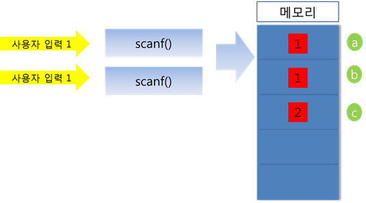 메모리 공간에 a,b,c 라고 이름 붙이면 그 공간의 주소는 &a.&b,&c가 됩니다.