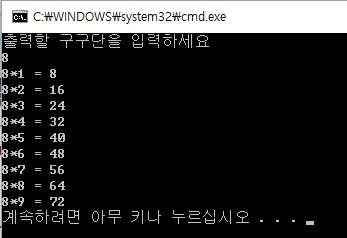 출력할 구구단의 ‘단’을 사용자로부터 입력 받아서 출력하는 프로그램입니다.