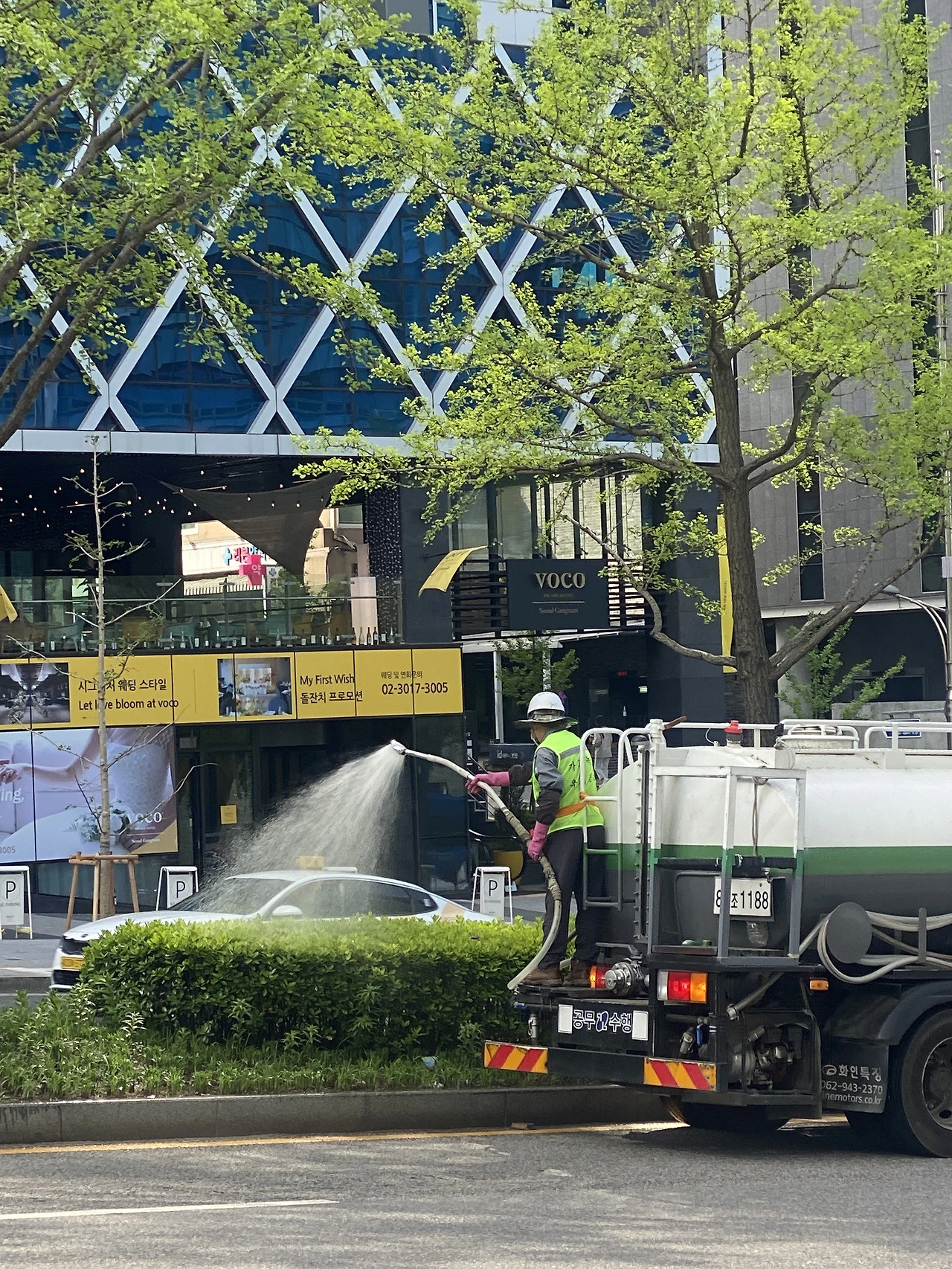 오늘 아침에는 진귀한 광경을 목격했다. 글쎄 가로수길에 물을 주고 있는 장면을 목도한 것이다.