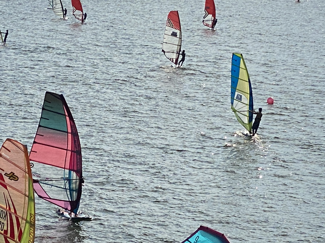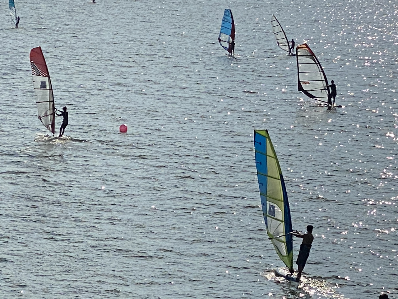 운이 좋다면 한강에서 윈드 서핑을 하는 모습을 볼 수 있다. 닻마다 색이 달라서, 마치 한강에 무지개가 뜬 것 같다.