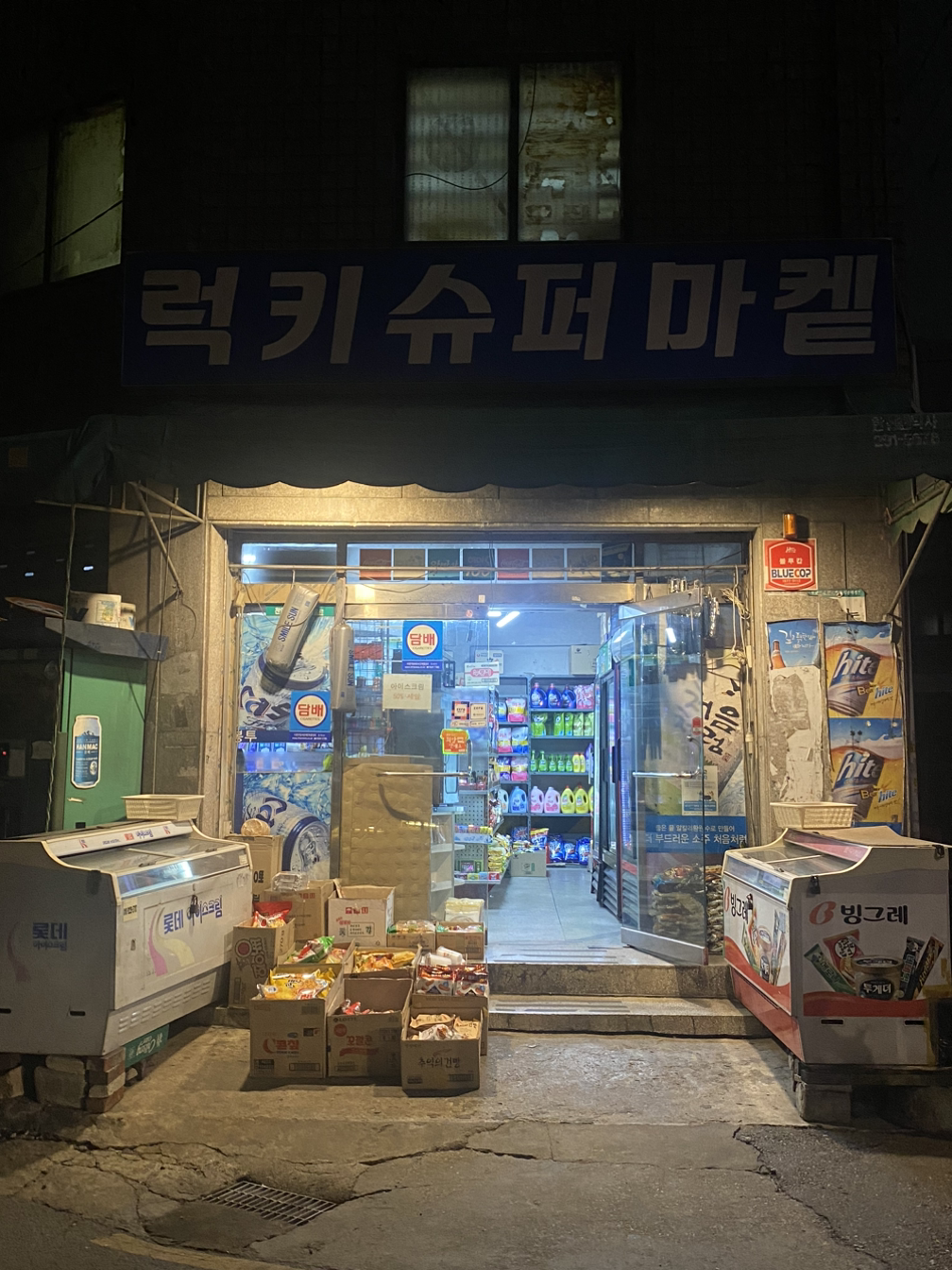 슈퍼마켙이라는 표기가, 얼마나 오래된 슈퍼인지 말해준다. 성수동에 덕지덕지 묻은 시간들.