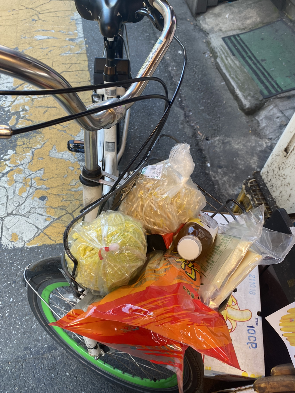 바구니가 터져라 장 본 것들을 넣고 달리면, 부자라도 된 것 같다.