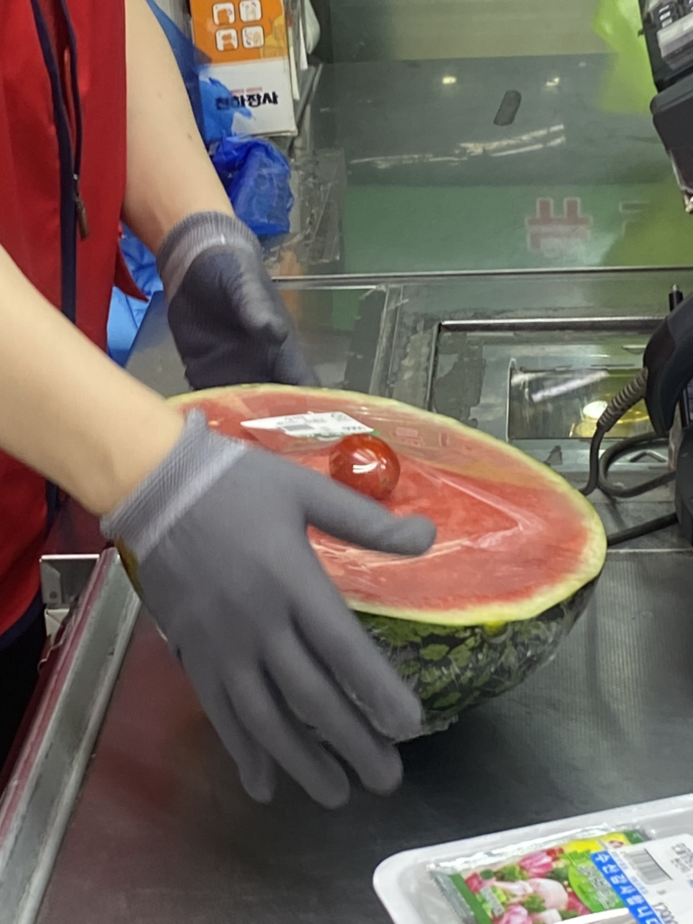처음엔 수박 사면 방울토마토 서비스를 하나 주는 건가 싶었는데, 수박 부서질까 봐 넣은 거였다.