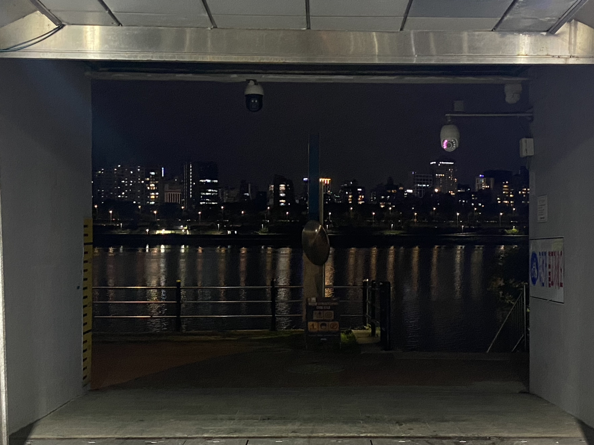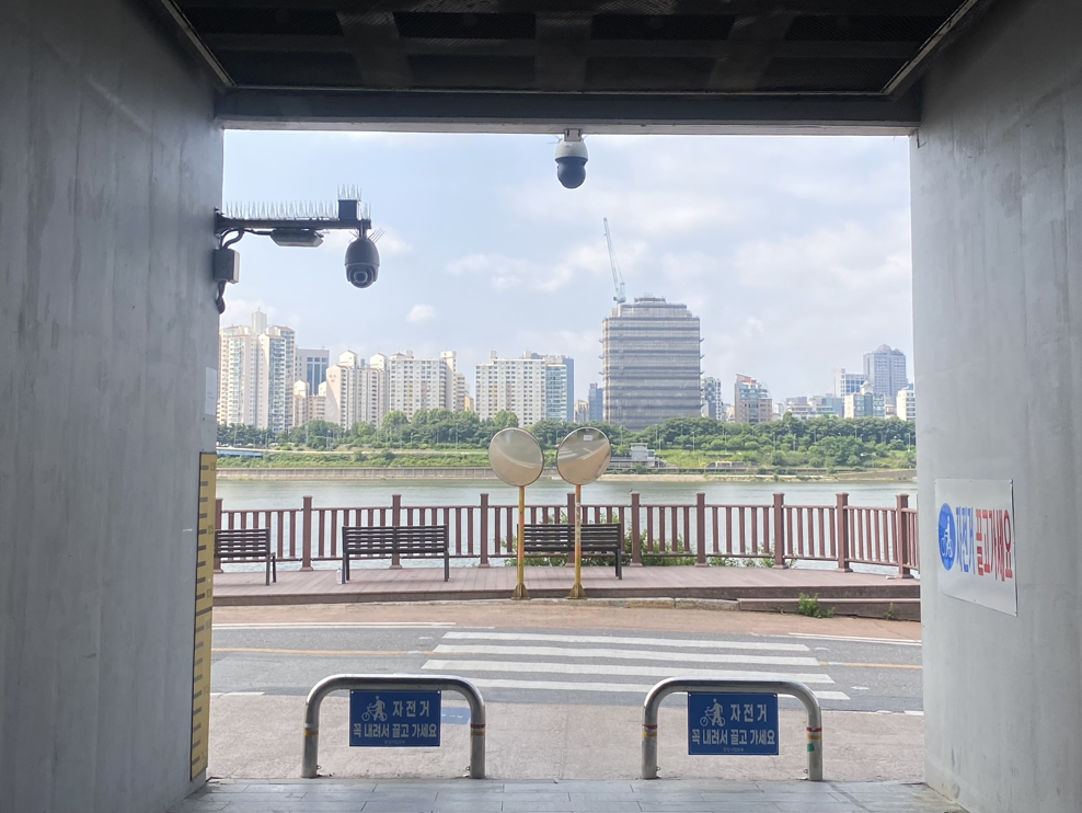 한강산책로로 진입하기 전, 터널에서 한강을 바라보면 묘하다. 회색 터널이 마치 프레임처럼 한강을 감싸서, 멋진 그림 한 폭을 보고 있는 듯하달까.