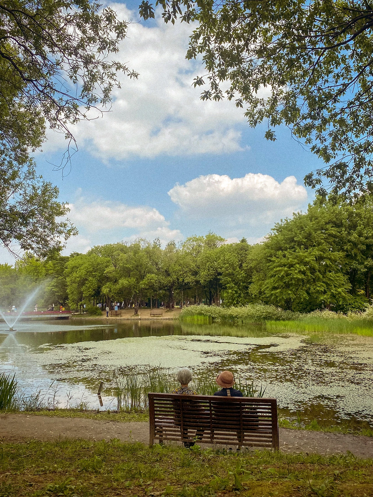 5월의 서울숲에서 만난 푸르른 우정. 저 두 분을 보자, 사람들로 북적이던 서울숲이 갑자기 모네의 정원이 되었다.