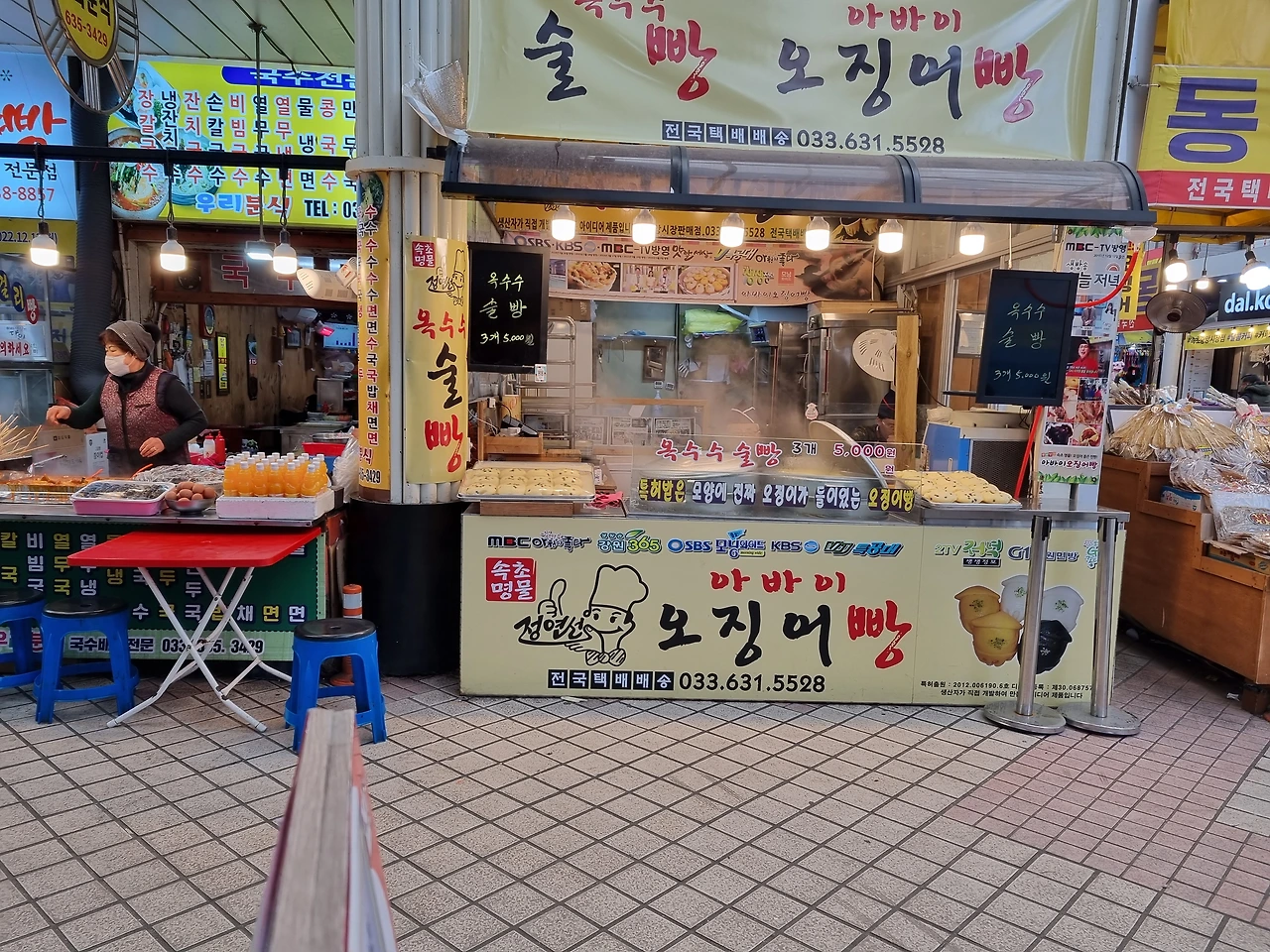 속초 중앙시장에 3대 인기 맛가게는 닭강정, 감자옹심이, 막걸리빵집인데 그중 으뜸은 닭강정가게다. 잘 알려진 ㅁㅅ 닭강정집은 속초에서 세금을 제일 많이 내는 사업장(기업포함)이며 중앙시장에 가게가 세 군데나 된단다.