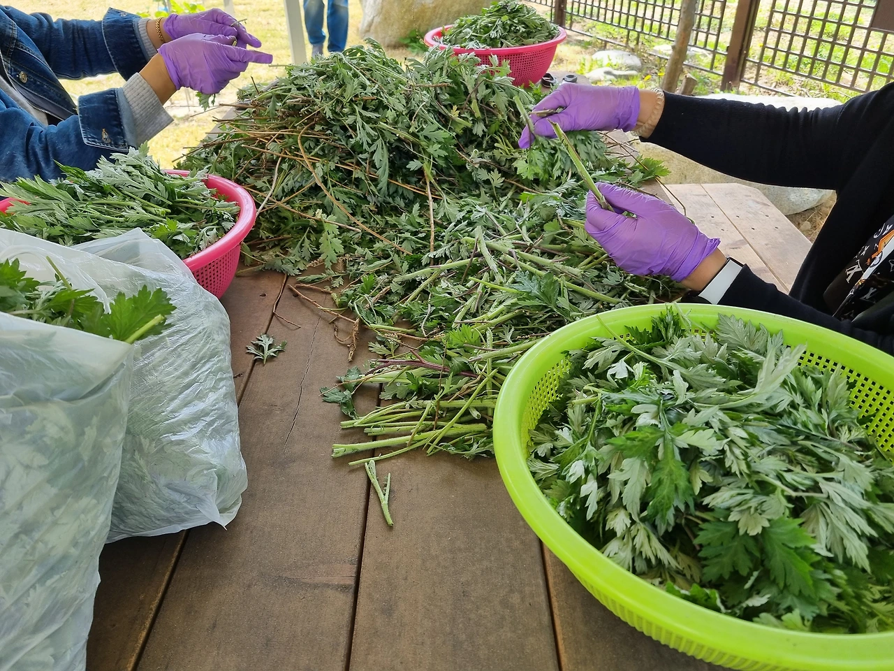 야외 식탁에 둘러앉아 반가움의 수다를 떨다 나물 캐기 체험을 했다.