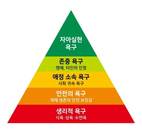 매슬로우가 인간욕구 5단계를 피라미드를 그려서 설명했다.