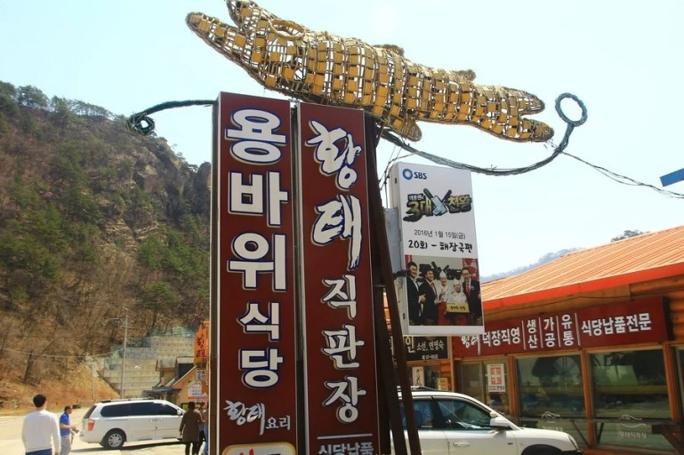 용바위식당은 진부령과 미시령이 분기되는 용대리에 위치하며 백종원 씨가 이미 낙점한 곳이라 더 설명이 필요 없을 듯 한 곳. 용대리 덕장에서 모진 추위 속에 햇볕과 눈, 바람을 맞으며 건조(숙성)된 황태! 구이정식이나 황태국밥은 남녀노소를 가리지 않고 즐긴다. 동해안 넘어갈 때 고속도로로만 가지 말고 운치 있는 진부령길로 가면서 즐겨보시길~~