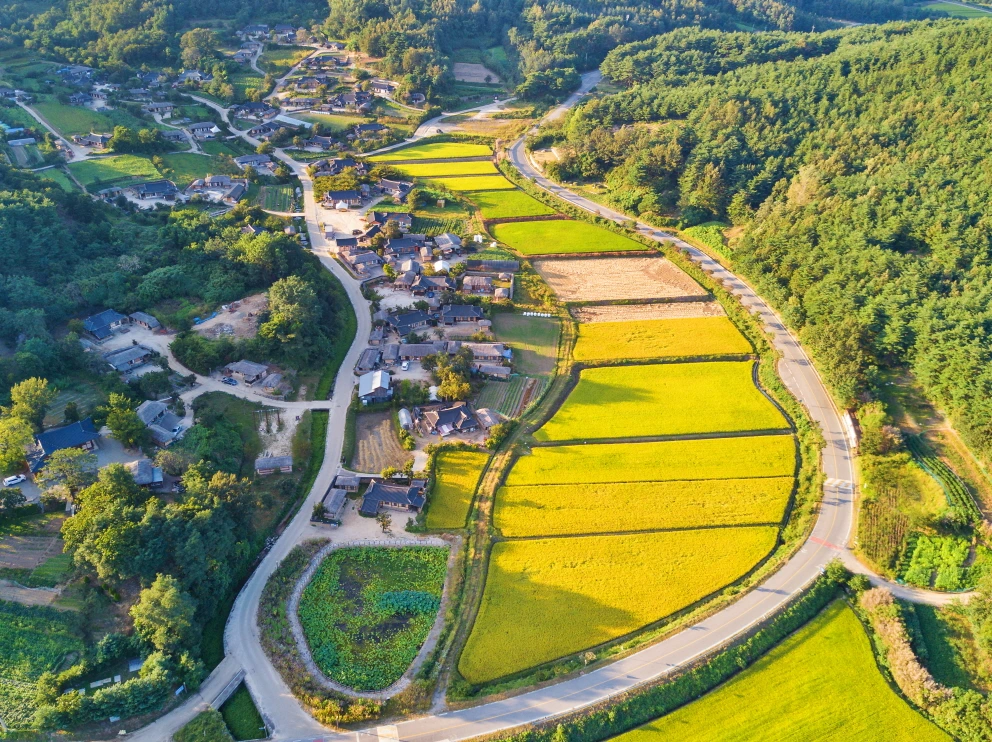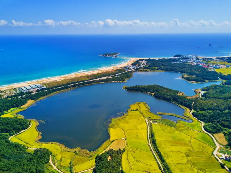 호수는 해송들이 우거진 구릉으로 둘러싸여 있고 호반 곳곳에는 실제 농사를 짓는 농토도 함께 연접한다. 농사용 비닐도 보이고 컨테이너 주변에 농구기들도 보인다.