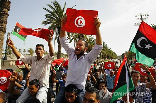 2010년 재스민 혁명 때 맥없이 쓰러지던