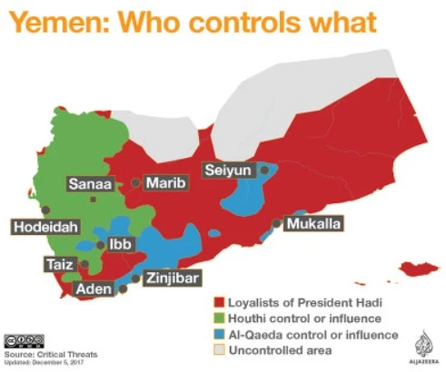 예멘정부, 후티반군, 아덴으로 피난한 하디정부, 사우디 주도 연합군, 남예멘 분리주의자, 알카에다 등 테러집단