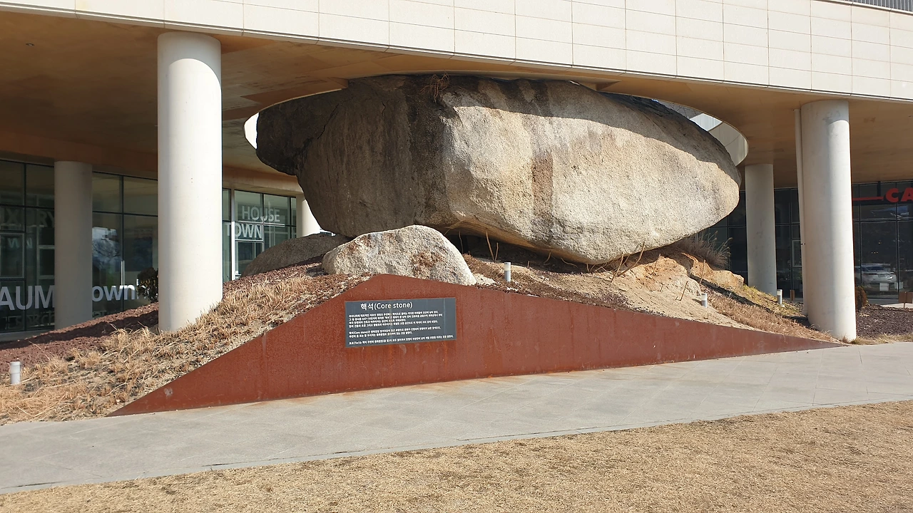 그래도 작은 위안을 받는 것은 이 아파트 설계자가 진중해 보이는 핵석과 건물을 조화롭게 건축하였고, 그 의미를 적은 자그마한 안내간판이 보인다. 나 같은 문외한이 다니다가 핵석의 가치를 알아보게 하였으니 참 다행이다.