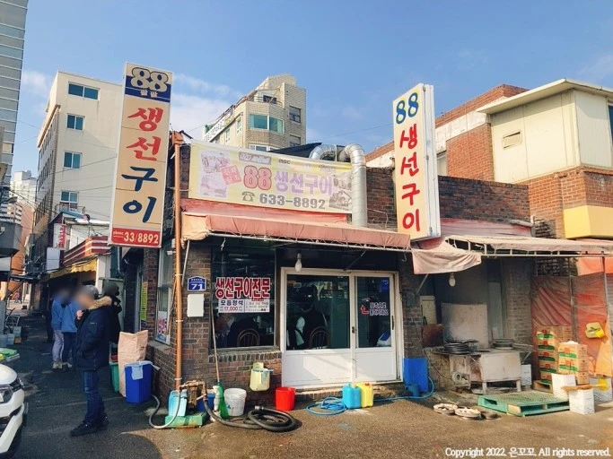 식당 앞을 다니면서 궁금했던 것은 ‘88생선구이’라는 식당 상호였다. 혹시 88 올림픽? 50년 전통이라면 올림픽이 열린 1988년과 관련이 있어 보이지도 않는다. 팔팔(88)한 생선을 사용한다는 의미로 해석하는 게 맞는 것 같다. 그를 입증하는 것이 이 집 전화번호 633-8892였다. ‘88생선92’ 즉 팔팔(싱싱)한 생선구이 집을 지향하겠다는 주인의 의지로 저 번호를 가진 것 같다.