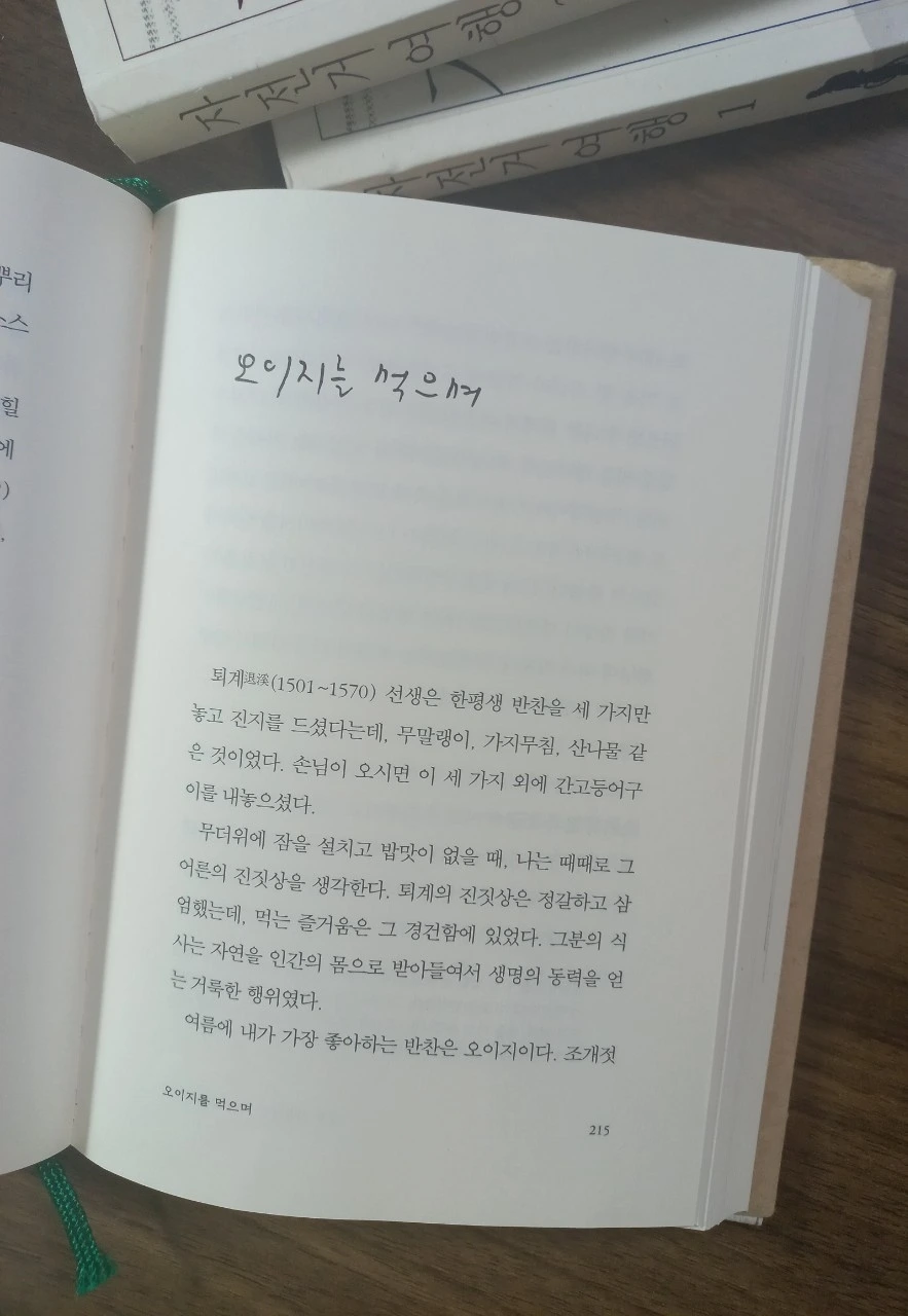 김훈 선생의 <오이지를 먹으며>를 읽으며 그 옛날 시댁 여름 밥상이 떠올랐다. 텃밭에 널린 가지 오이 호박 고추 상추 같은 채소가 지천에 널려 대문 밖으로 나가 툭하고 따오면 그걸로 끝. 비벼 먹든 싸 먹든 특별할 것 없어도 별식이었다. 나는 그걸로 끝인데 당연히 김훈은 그걸로 끝내지 않는다.