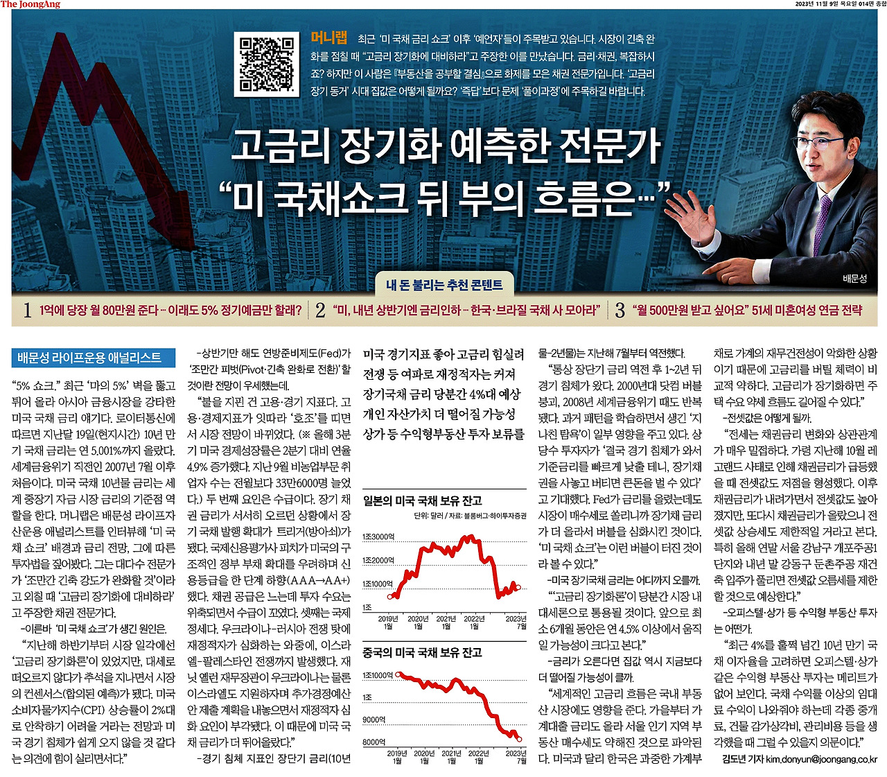 닷컴 버블 붕괴, 금융위기 당시 장단기 금리가 역전되면 경기침체가 온다는 사실이 학습됐다. 2022년 7월 장단기 금리가 역전되면서 미국 경기침체가 예견됐다. 이를 우려한 FRB가 긴축을 몀추고 기준금리를 인하하기 시작하는 변곡점이 지나면 2년만기 단기채권의 가격은 급등할 것으로 예상된다. 큰 손들이 단기채권 매수에 나서면서 단기채권 금리가 떨어진다. 중국이 장기채권을 내다팔면서 10년물 국채금리는 고공행진이다. 장단기 금리차 역전 문제가 완화되지만 이는 경기 회복 신호가 아니다. 중국이 수출길이 막히자 내수를 키우기 위해 시중의 달러를 거두어 들이고 있다. 단기채 금리가 떨어지는 건 큰 손들이 경기침체에 배팅하는 것이다.