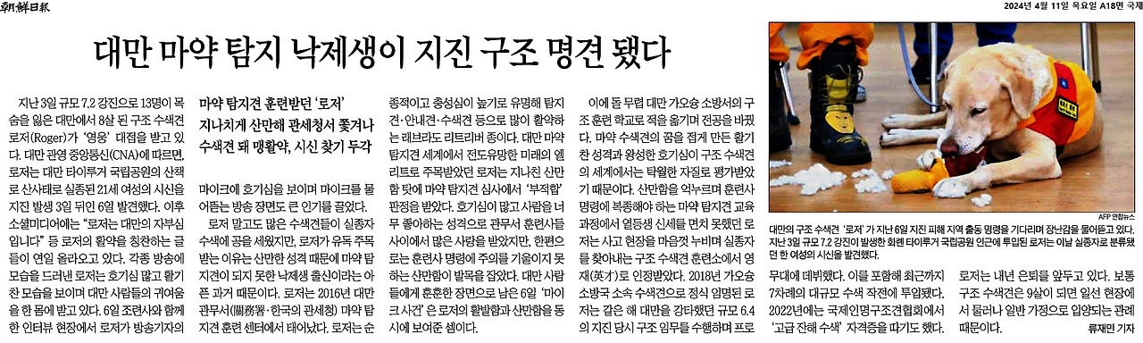 1. 경우에 따라 장점이 단점이 되고, 단점이 장점이 됩니다. 로저는 사람 좋아하고 호기심이 많은 개입니다. 마약 탐지 훈련을 할 때는 이 것이 산만함으로 나타나 낙제견이 됐죠. 하지만 인명 구조 작업에선 로저의 이같은 성격이 빛을 발했습니다. 로저는 변한 게 없는 데 하는 일에 따라 낙제견이 명견이 됩니다. 사람도 마찬가지입니다. 로저의 이야기를 바탕으로 성공의