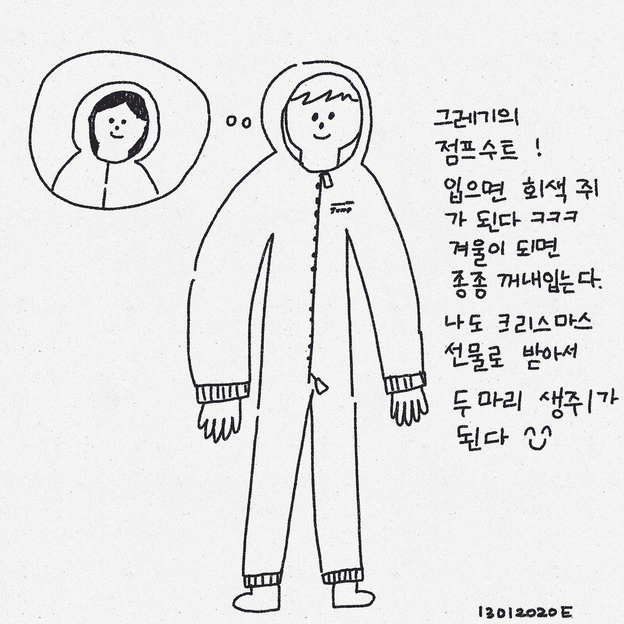 그레기는 원래 가지고 있던 오래된 점프수트이고 나는 아마도 첫번째 독일가족과의 크리스마스파티 에서 선물을 받았다. 그때는 여동생도 잠시 와있어서 같이 점프수트를 받았다.