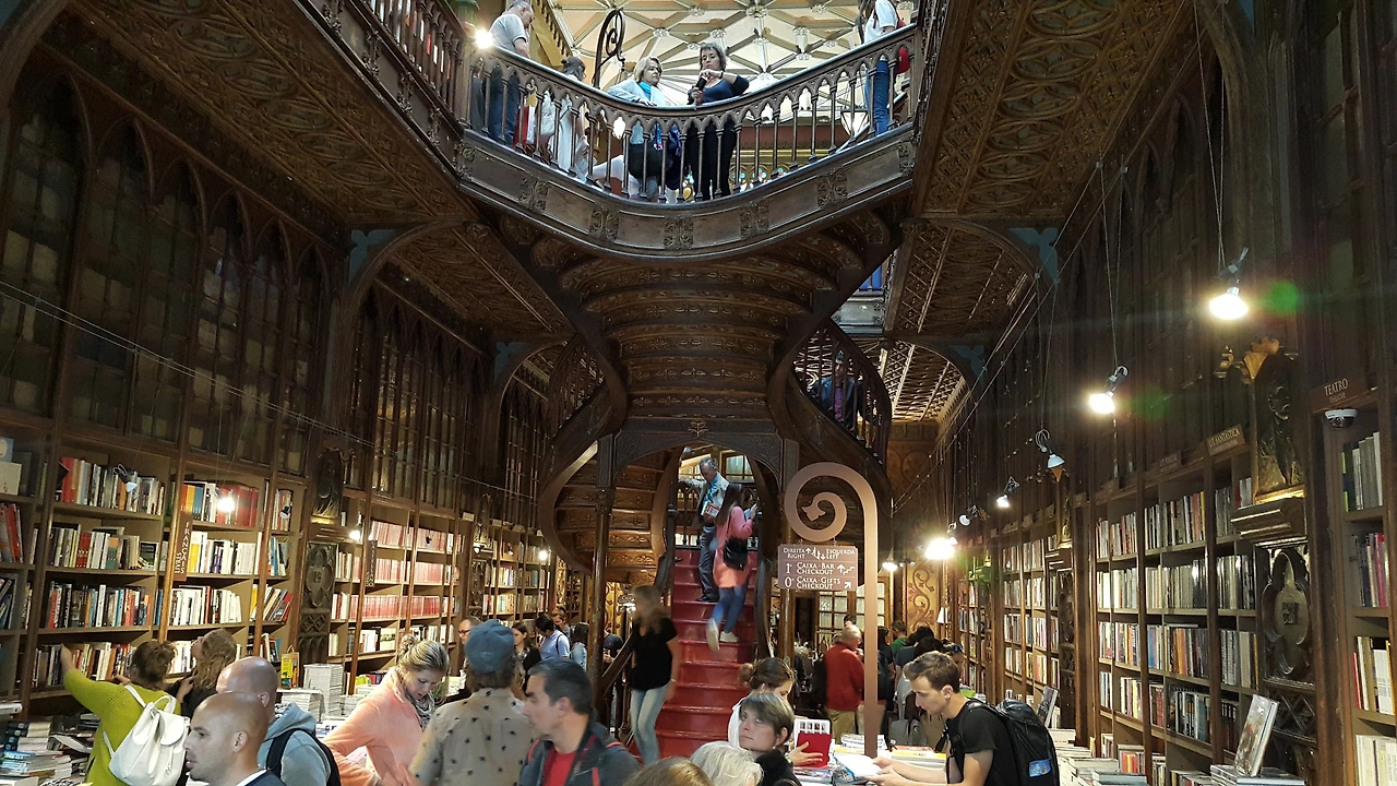 조앤 롤링이 무명시절 포르투에서 생활하며 보고 겪은 것들을 《해리포터》 시리즈에 많이 녹였죠. 렐루 서점에서 호그와트 인테리어 콘셉트를 착안했다는데요. 가장 눈길을 사로잡는 건 역시 정중앙의 붉은 쌍 나선 계단입니다.