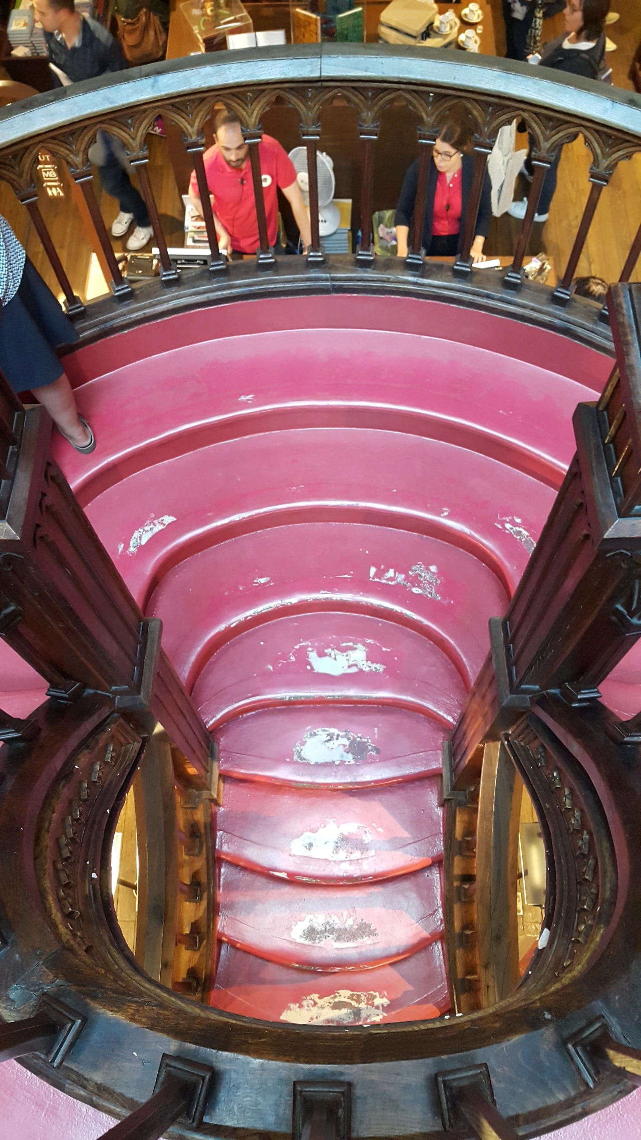 This beautiful red and curved spiral staircase isn't actually wood, it's wood-painted lime. Anyway, taking a solo photo from the front of the stairs is like asking for the moon!