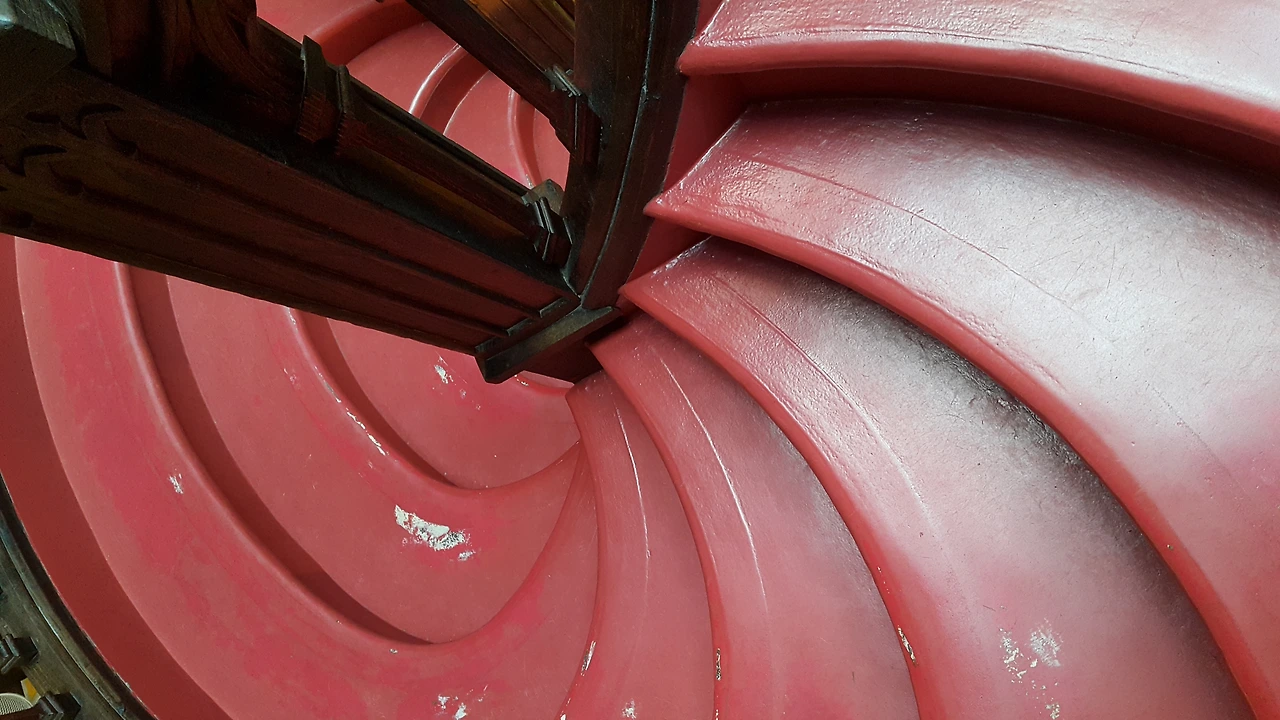 아름다운 붉은 색상과 곡선의 나선 계단은 사실 나무가 아니라 석회에 나무색을 칠한 겁니다.