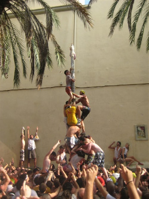 빨로 하본 palo jabón이라는 미끌미끌 비누칠을 해놓은 2층 높이의 장대 위에 돼지 넓적다리 햄 하몬 jamón을 매달아 놓고 누구라도 먼저 올라가서 따내는 순간 축제가 시작된다. 시나리오는 그렇지만 실제로는 이게 쉽지 않다. 그렇다고 축제가 지연될 순 없다. 하몬을 따든 말든 오전 11시가 되면 토마토를 산처럼 실은 덤프트럭들이 메인 광장인 쁠라사 델 뿌에블로 Plaza del Pueblo 주위에 진입하여 토마토를 쏟아 놓는다. 물대포 신호가 떨어지고 총성 없는 유쾌한 전쟁이 드디어 시작된다.