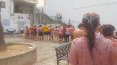 토마토 전쟁은 굵고 짧게 딱 1시간이다. 1시간이면 충분하다. 전쟁이 끝난 후 광장은 온통 시뻘건 토마토 파편으로 뒤덮인다. 기다렸다는 듯 소방차가 출동해 물청소를 싹 한다. 재밌게도 토마토의 구연산이 세제 역할을 하기 때문에 마을의 묵은 때를 싹 벗겨준다. 주변 흰색 집들은 축제 전 미리 파란색 방수천을 덮어두어서 탈이 없다.
