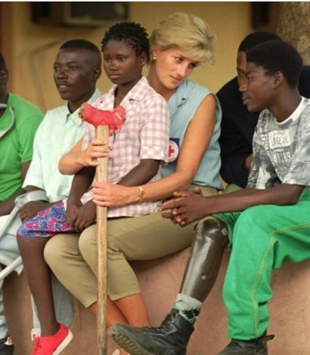 1997년, 앙골라 지뢰 피해 아동들과 함께