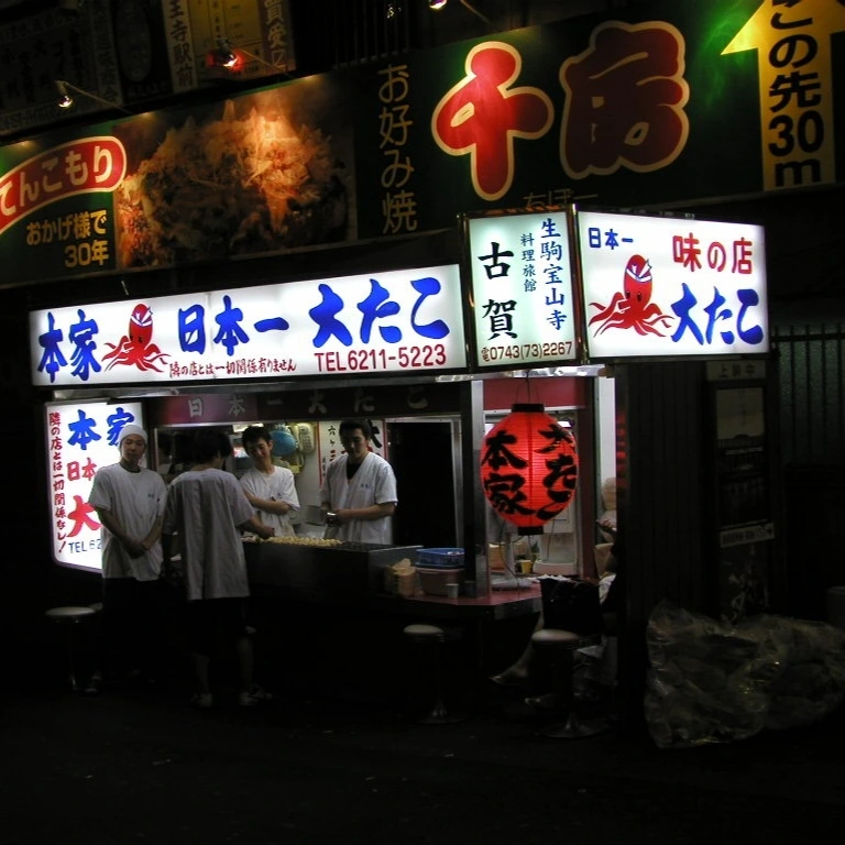 강변따라 타코야키 집들도 유명합니다. 맛은? 가게에 따라 복불복입니다.