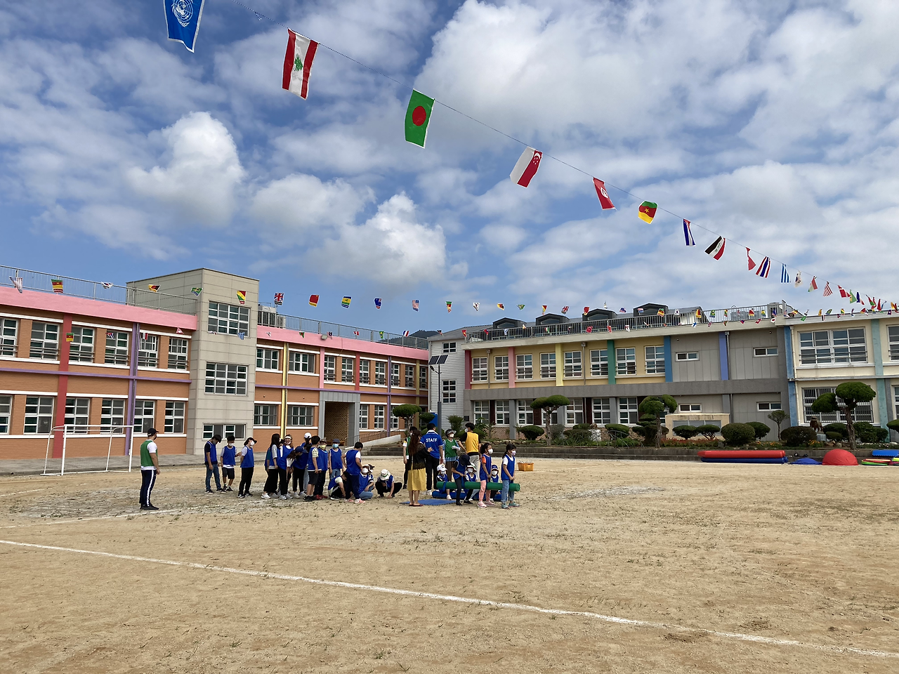 흙바닥 운동장이 있는 학교에 줄줄이 만국기가 달렸다. 교직원을 위한 자리는 앞쪽에, 학부모들을 위한 자리는 뒤쪽에 만들어두었다. 예전 같으면 갈 수 있는 학부모들 모두 모여 함께 달리기도 하고 줄다리기도 참여했는데, 이제는 신청한 학부모 10명에 한에 구경할 수 있는 권리가 주어졌다. 의자도 듬성듬성, 수다를 떨기도 모호한 자리배치. 그래도 운동회가 열리는 것 자체에 의의를 두며 즐겁게 구경하였다.