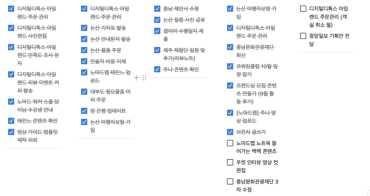신뢰는 대단한 결과가 아니라 작은 약속을 지키는 것에서 시작된다. 회의에 늦지 않는 것, 정해진 마감일을 지키는 것, 약속한 수량/퀄리티를 제공하는 것에 (정말) 목숨을 걸어야 한다. 그렇기에 업무툴을 200% 활용해서 약속을 반드시 지켜야겠다는 결의를 다진다.