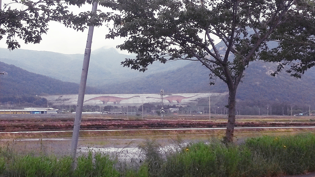 완도에서 다도해해상공원을 보고 올라가는 길 저 멀리 공룡커플이 보였다. 정말 의외의 풍경이라 나도 모르게 길가에 멈춰서 사진을 찍었다. 아, 그래 여기가 공룡발자국이 발견된 그 어딘가라지. 아마도 근처에 자연사 박물관이나 공룡놀이공간이 있을 것 같았다. 하지만 빗줄기가 굵어지고 있어 딱 중간지점인 이모댁에 가기 위해 서둘러 이동을 하기로 했다.