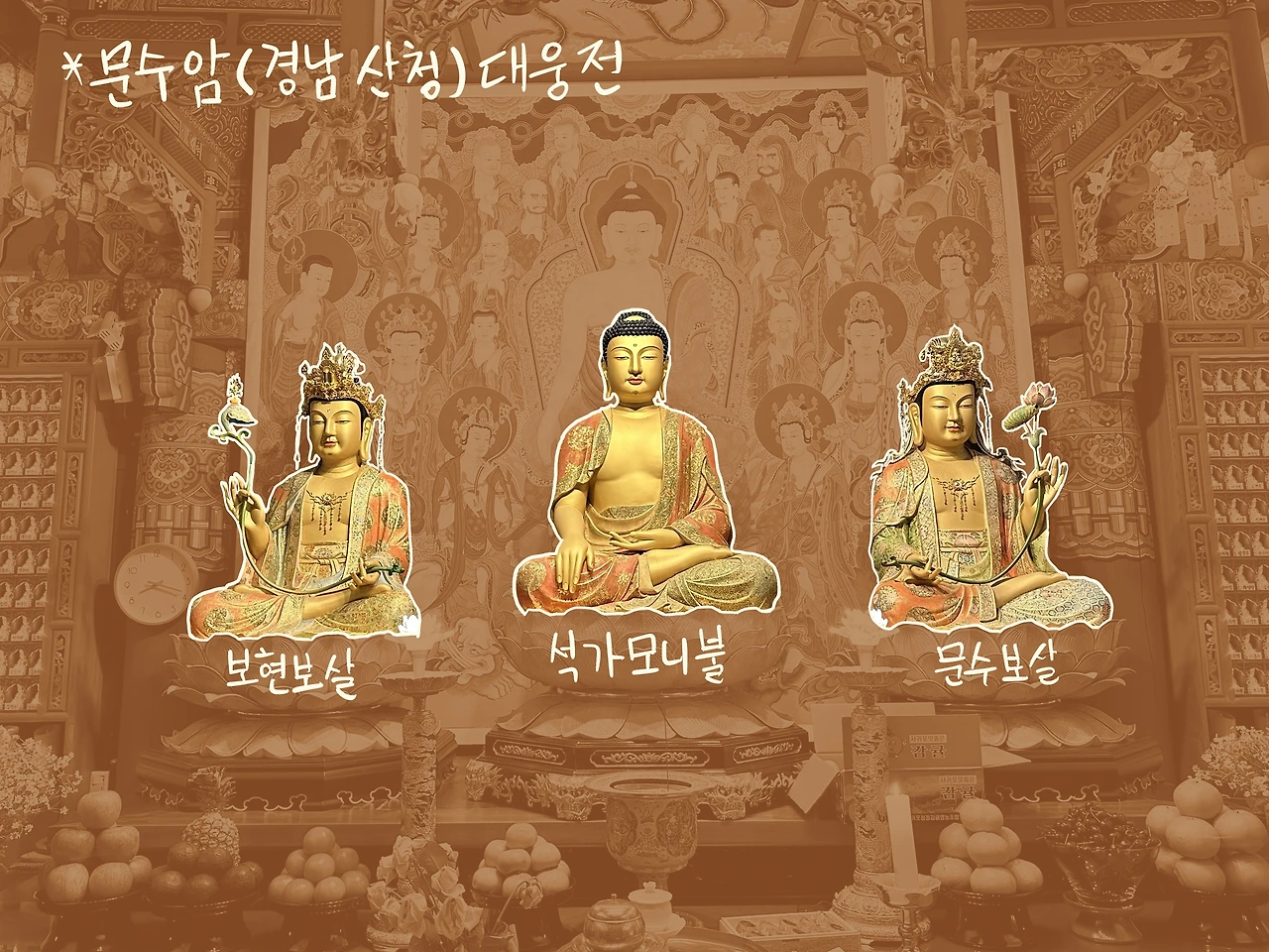 법당안에 들어가면 정면에 불단이 보인다. 불단은 불상이 높여진 단을 말한며 보통 3개의 불상이 있다. 경우에 따라서는 주불 하나만 있는 경우도 있다. 주인공 답게, 가운데 있는 불상이 이곳에서 주로 모시는 불상이다.주불 양옆에 있는 불상은 협시불이라고 하는데 보통 석가모니불 옆엔 대체로 문수보살과 보현보살이 있다. 만약 보살이 아닌 불상 (보통 아미타불과 약사여래)이 있을 경우엔 대웅보전이라고 격상된다. 이 경우 협시불 옆에 보살이 하나씩 더 붙어서 불상이 5개까지 늘어날 수 있다.