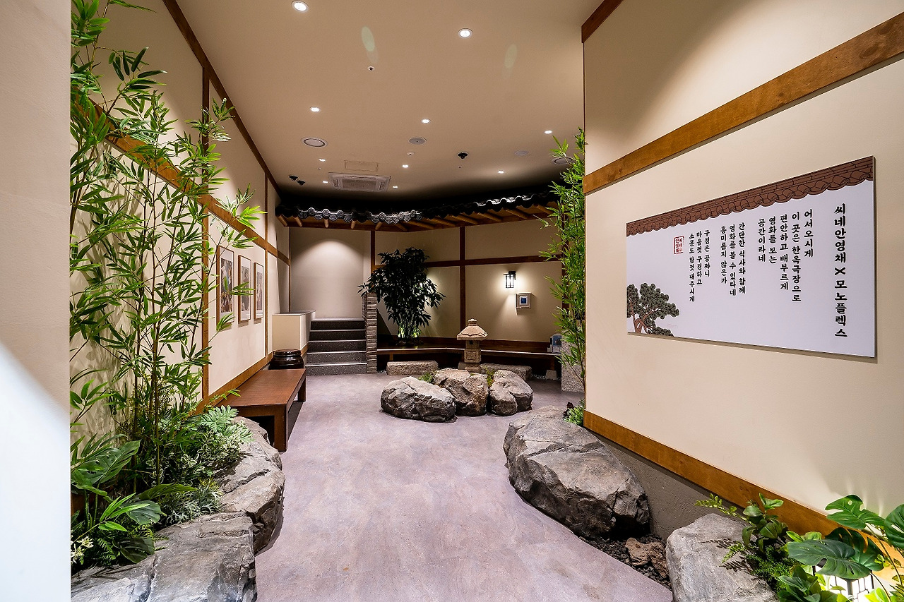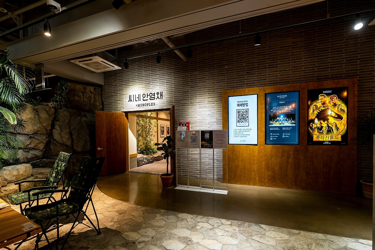 세계 최초의 한옥영화관인 '안영채 X 모노플렉스'는 동탄 호수공원에 만들어진 복합문화쇼핑몰 라크몽 건물 지하 1층에 위치해 있다. 지하 1층은 '메리그라운드'라는 이름으로, F&B 매장들이 다수 입점해 있는 층이다.