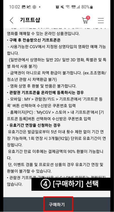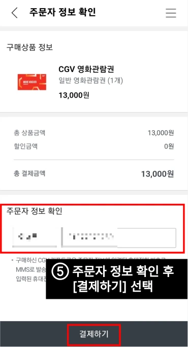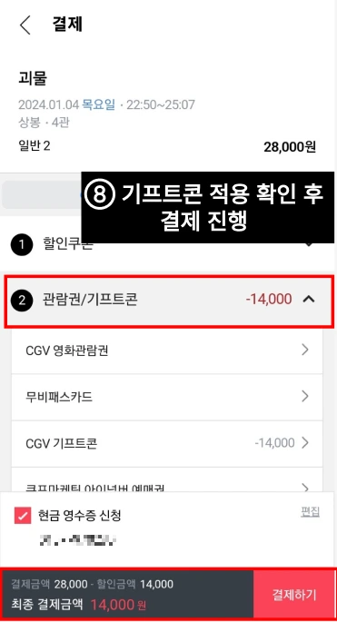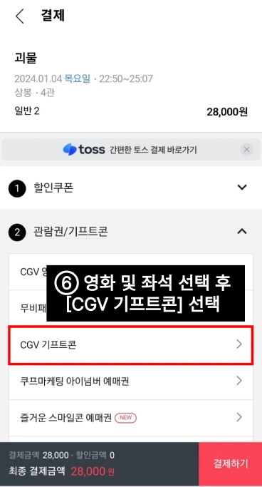 ⑥ 결제단계에서 [CGV 기프트콘]을 선택한다.