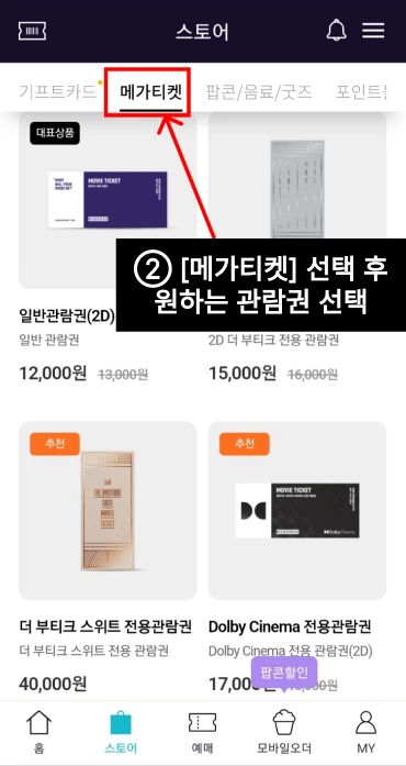 ② 스토어에서 [메가티켓]을 선택한다.
