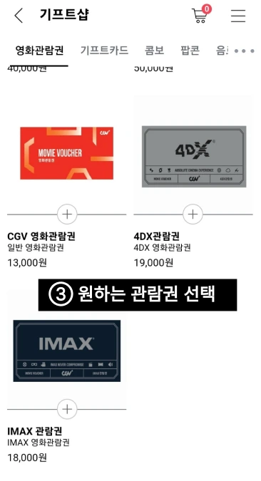 ② 기프트샵에서 [영화관람권]을 선택한다.