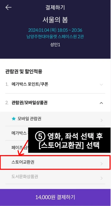 ⑥ 결제단계에서 [스토어교환권]을 선택한다.