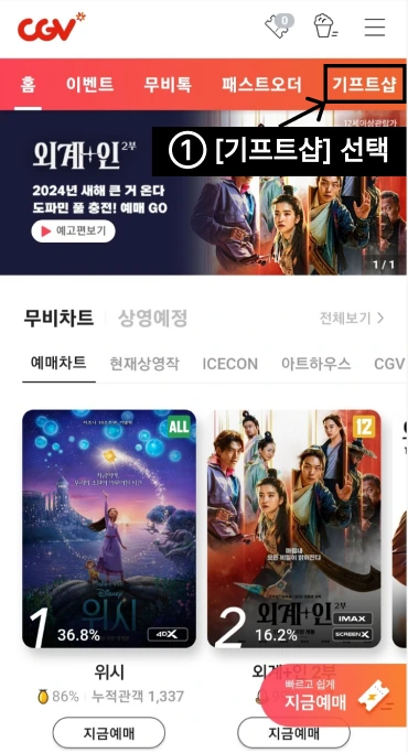 ① CGV 앱을 켜고 [기프트샵]을 선택한다.