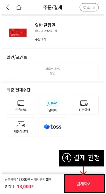 ⑧ 관람권이 적용되었는지 확인하고 결제를 진행한다.
