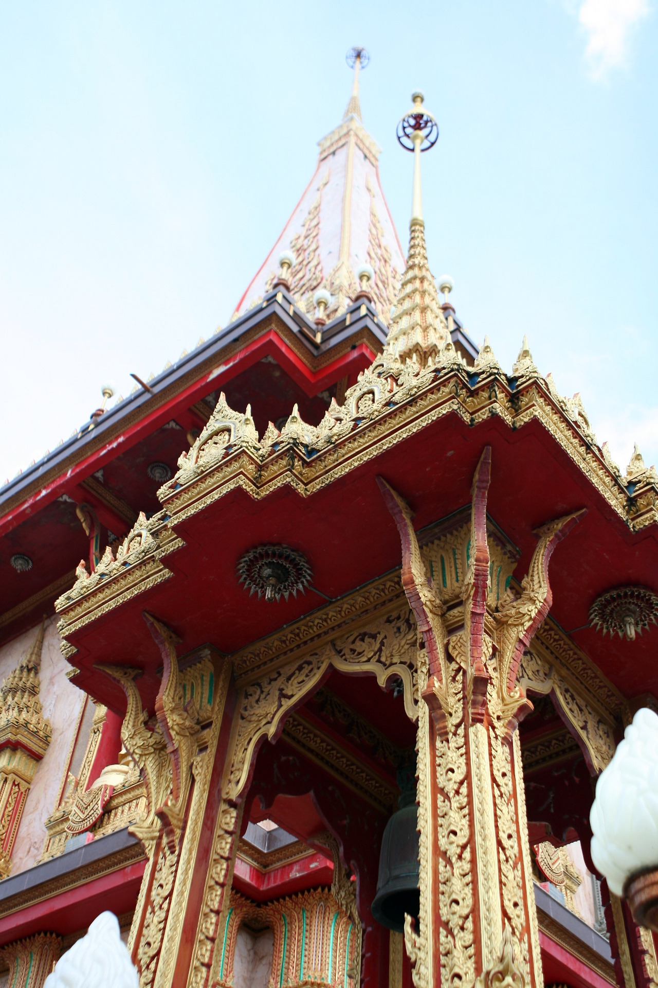 마지막 날에는 왓찰롱사원(Wat Chalong)으로 향했다. 태국에 왔으니 사원을 빼놓을 수는 없다. 동남아 사원 방문은 사실상 처음이었다. 푸켓 중심지에서 남쪽으로 8km 떨어진 곳에 자리 잡은 덕에 금방 도착할 수 있었다. 복장 규정이 있었는데, 무릎이 닿는 정도의 반바지는 제한하지 않았다. 우리나라나 중국 사찰과는 전혀 다른, 화려한 분위기가 생경함을 자아냈다.