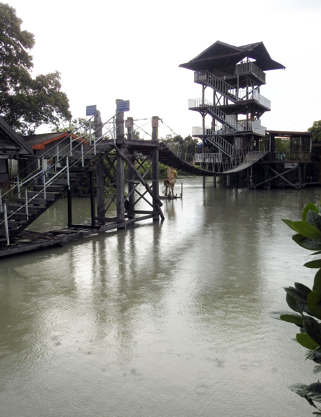 그리고 5일째는 방콕에서 동남쪽으로 145km 떨어진 관광도시 파타야(Pattaya)로 향했다. 파타야 수상시장을 들어갔는데, 며칠 전 갔던 방콕의 수상시장보다는 나았으나 역시 회색빛 수질은 혼탁했다. 보트를 타는 관광객들이 있었지만 걸어서 구경하기로 했다. 출렁다리가 있었고 목재로 만든 4층 높이의 전망대가 살짝 위태로워 보였다. 메인스트리트 같은 수로도 있다.