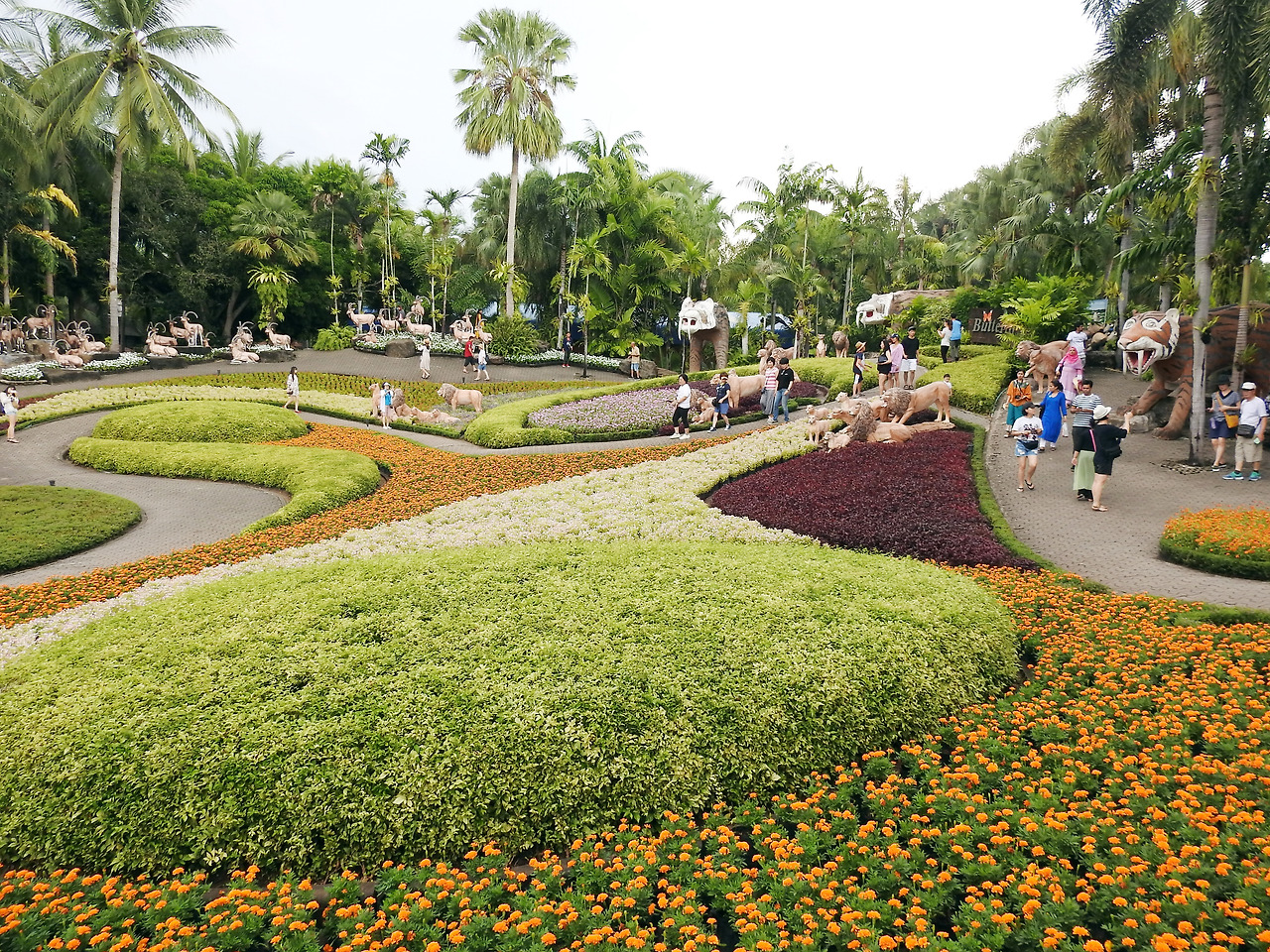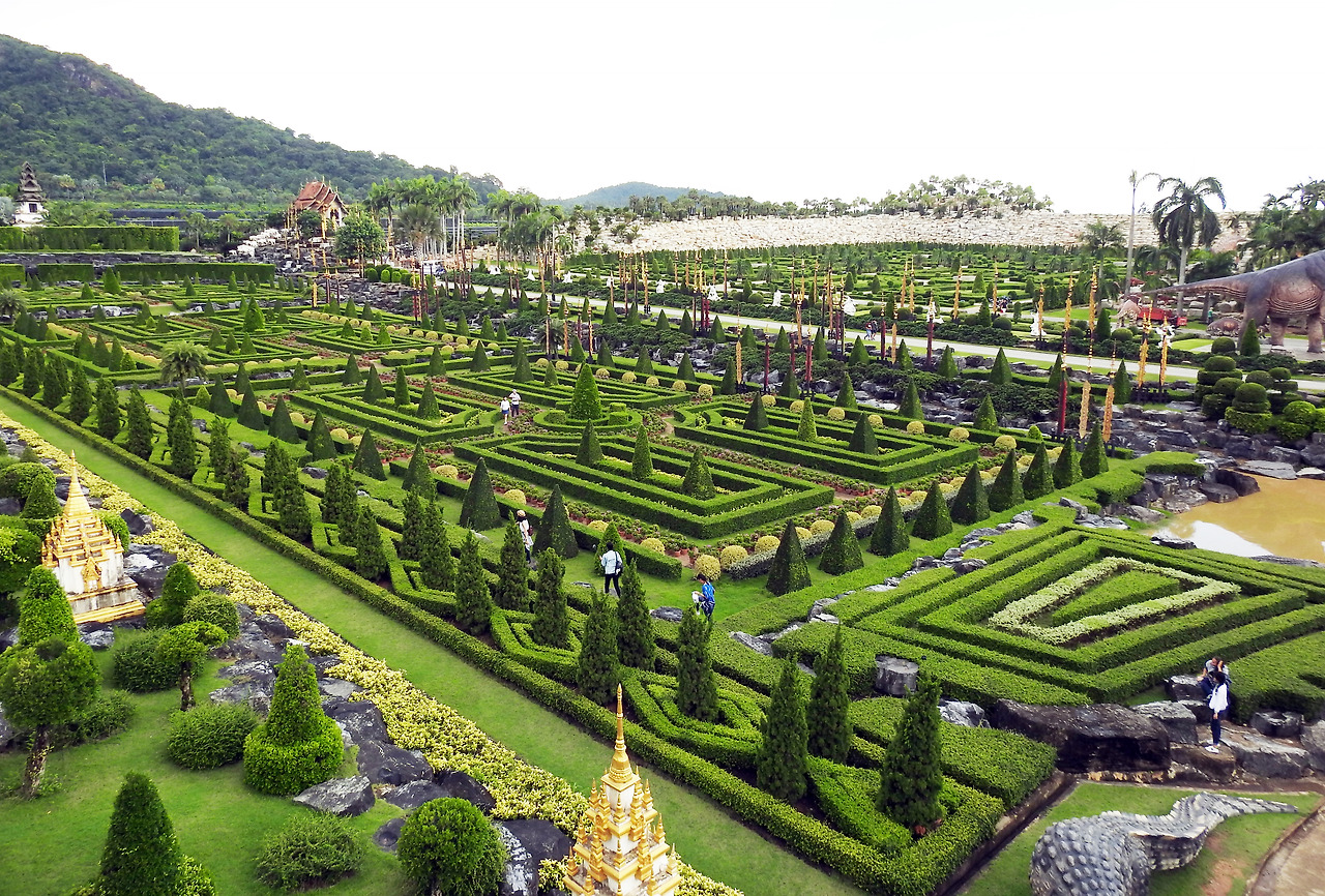 1시간30분을 둘러본 뒤 농눅빌리지(Nong Nooch Tropical Garden)로 향했다. 입구부터 화려한, 무려 200만평이 넘는 개인 소유의 농장이었다. 1954년 농눅 탄차나가 남편에 대한 사랑으로 150종의 선인장과 500종의 난초, 200종의 고사리 등으로 열대식물원을 세웠는데, 아들 깜퐁 탄사차(Kampon Tansacha)가 아시아 최대 식물원이자 테마파크로 키워냈다고 한다.