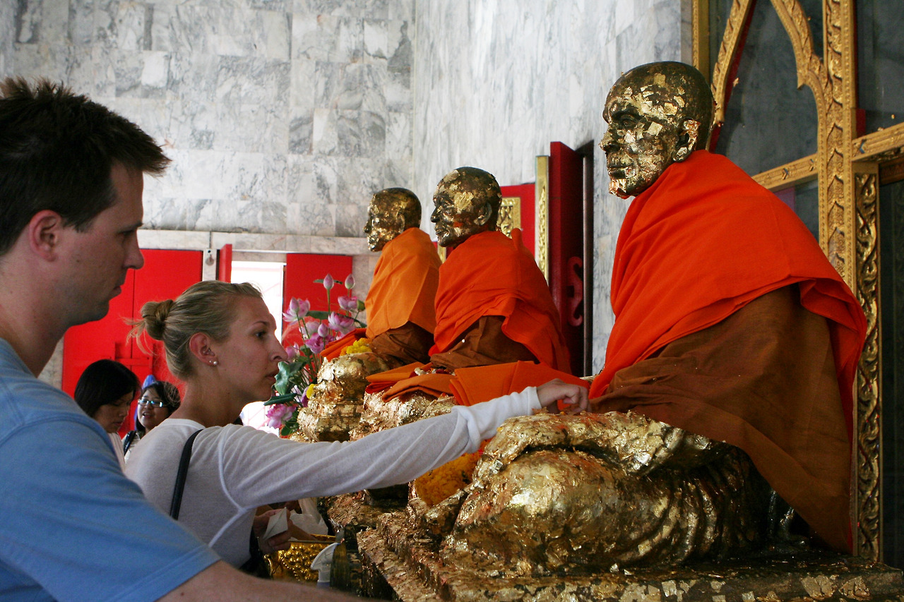 왓찰롱사원은 고명한 세 명의 승려를 형상화한 불상을 보러 많은 관광객들이 찾는다.