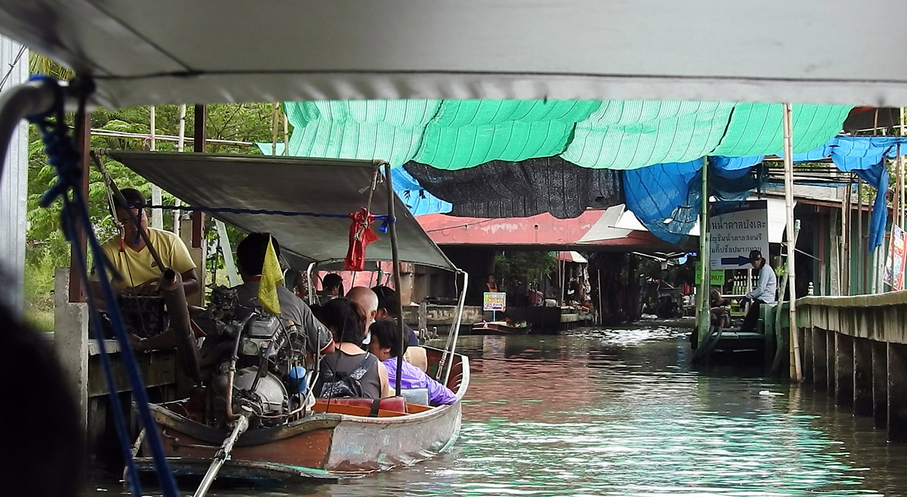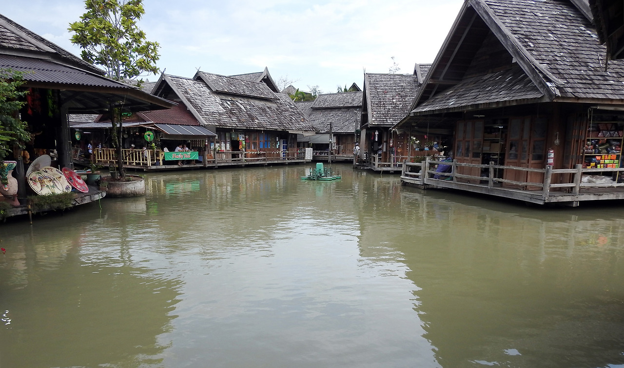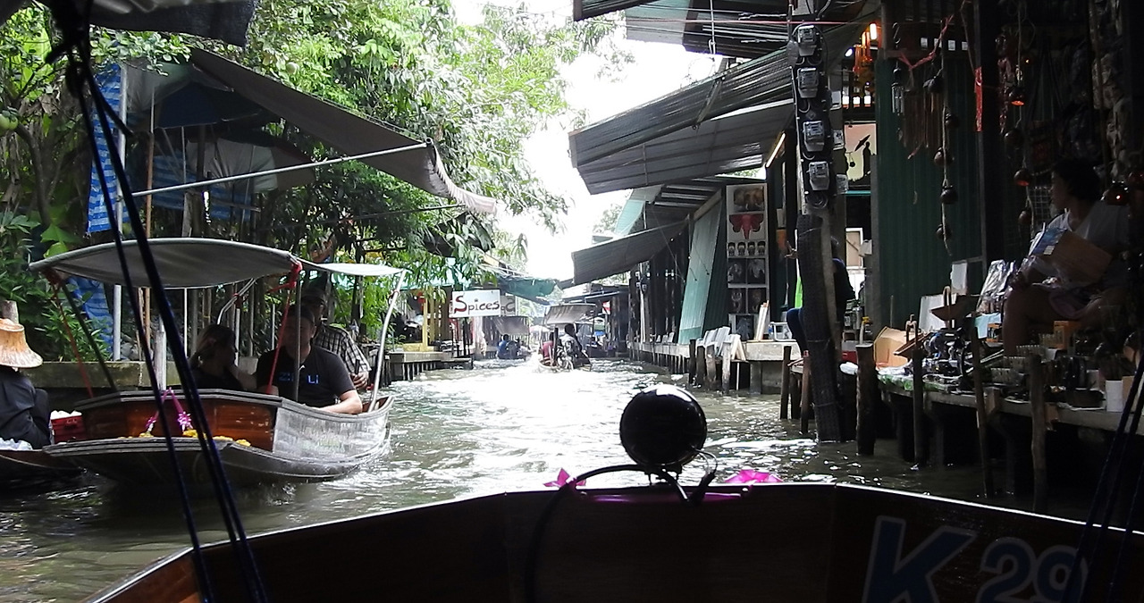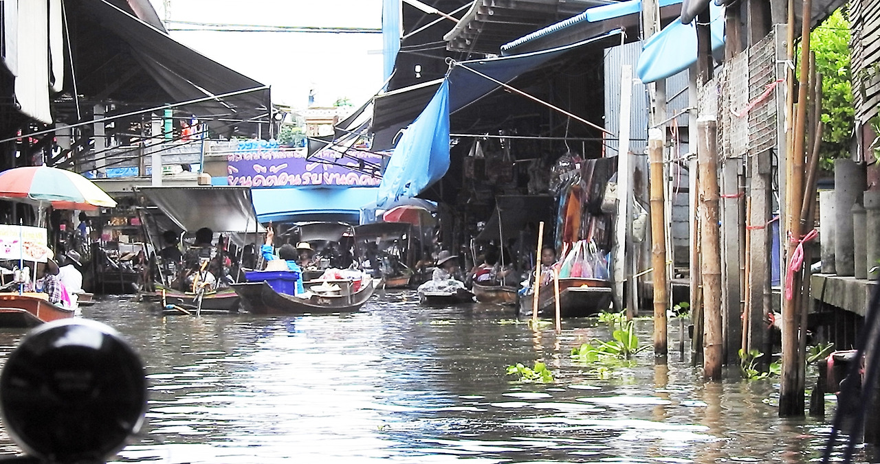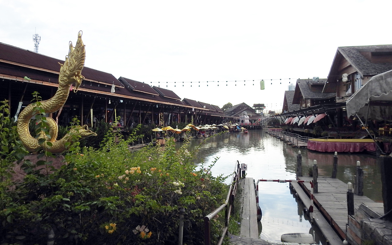 태국에서 가장 유명한 수상시장으로 별도 비용을 내고 보트를 이용할 수 있다. 운하와 수로로 만들어진 대형 시장으로 전통적인 모습을 유지하고 있어서 방콕에서 당일 투어로 많이 찾는 곳이다. 과일과 잡화, 기념품을 실은 목선들이 교통체증을 유발하듯이 수로를 지나고 있고, 수상가옥 역시 기념품과 의복, 과일, 전통음식들을 파는 상점들과 일반 주택이 혼재해 있었다.